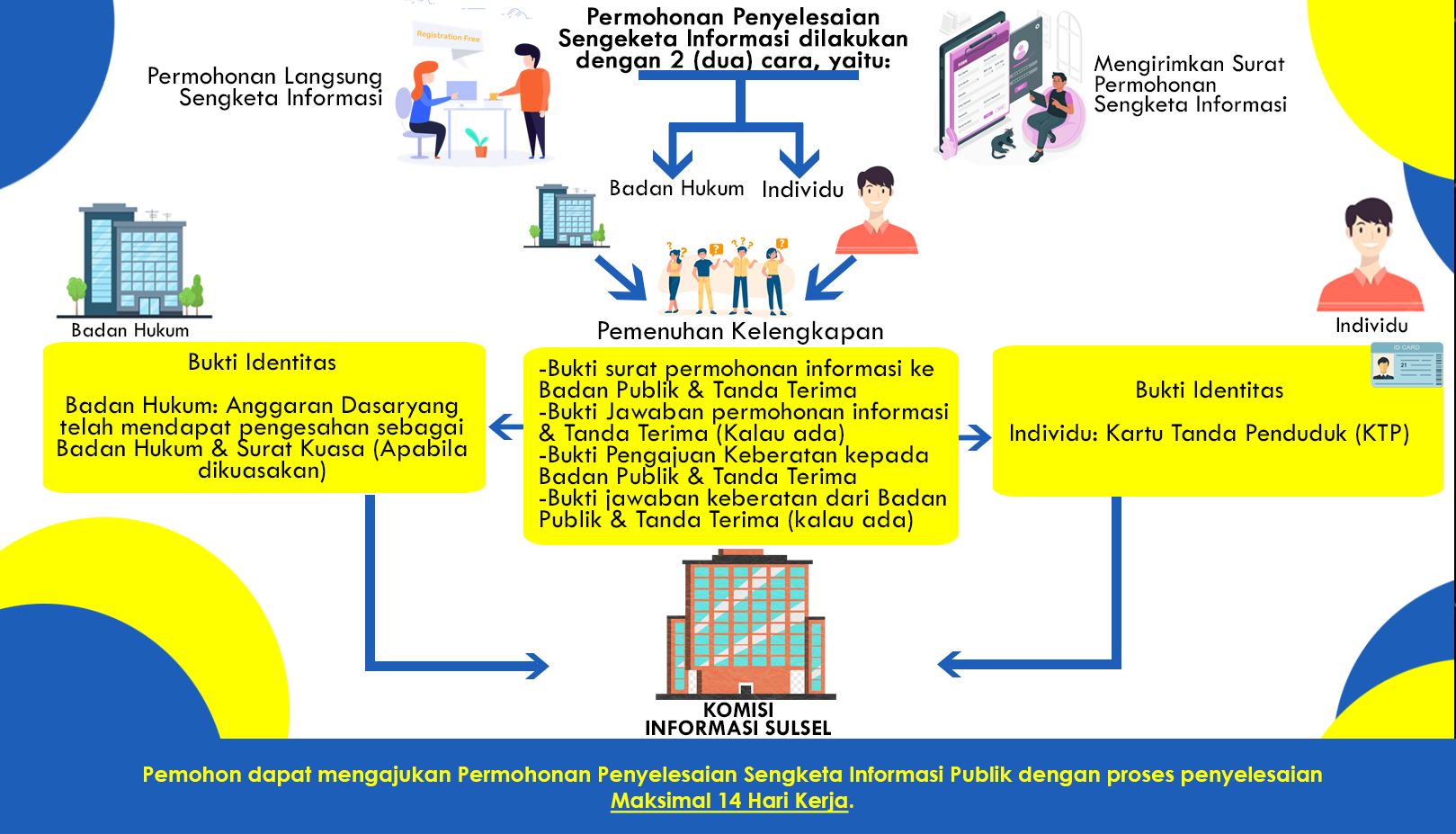 Apabila Pemohon Informasi tidak puas dengan proses Keberatan Informasi Publik, Pemohon dapat mengajukan Permohonan Penyelesaian Sengketa Informasi Publik ke Komisi Informasi Daerah dengan proses maksimal 14 hari kerja, dengan tata cara sebagai berikut: